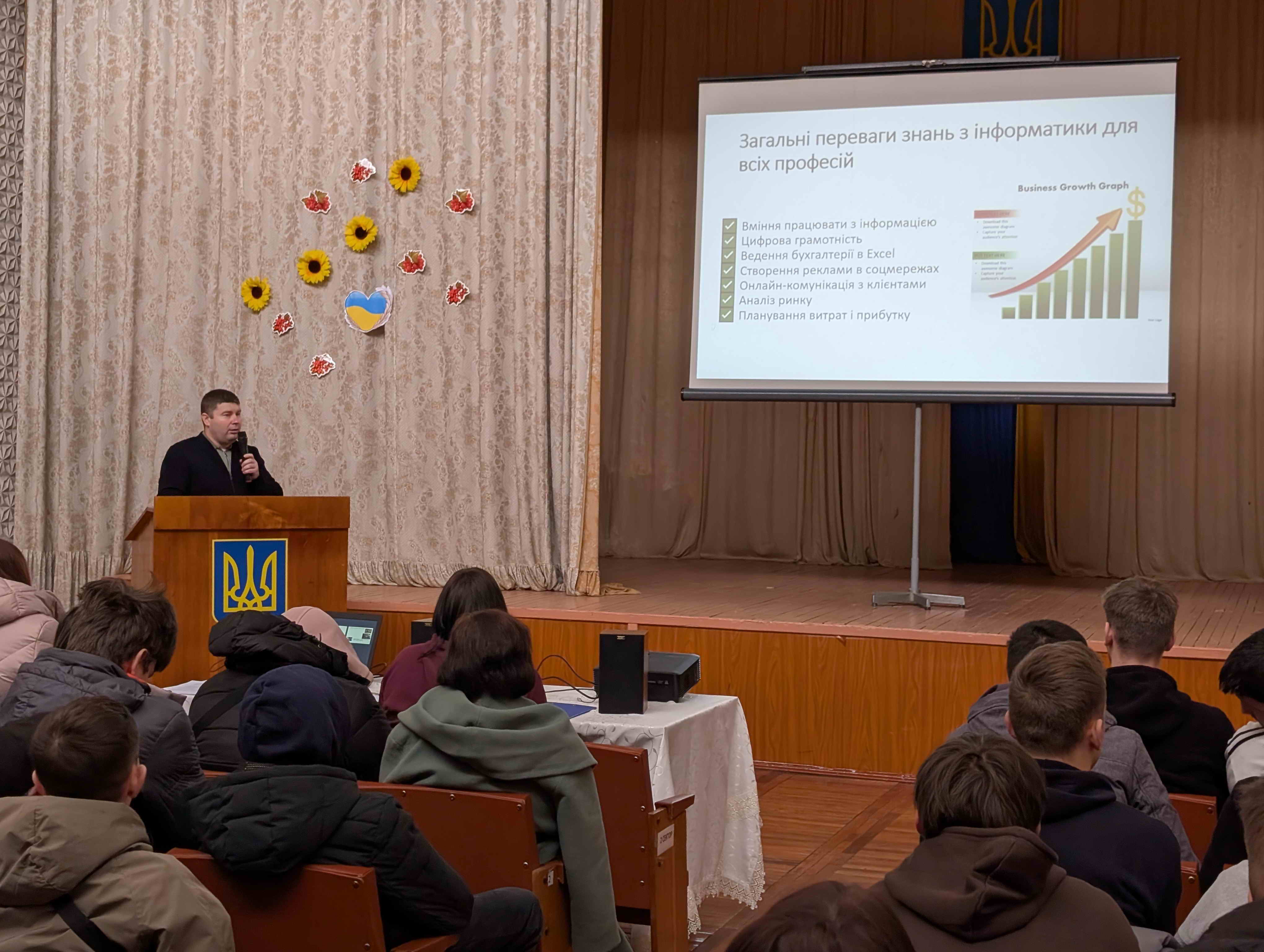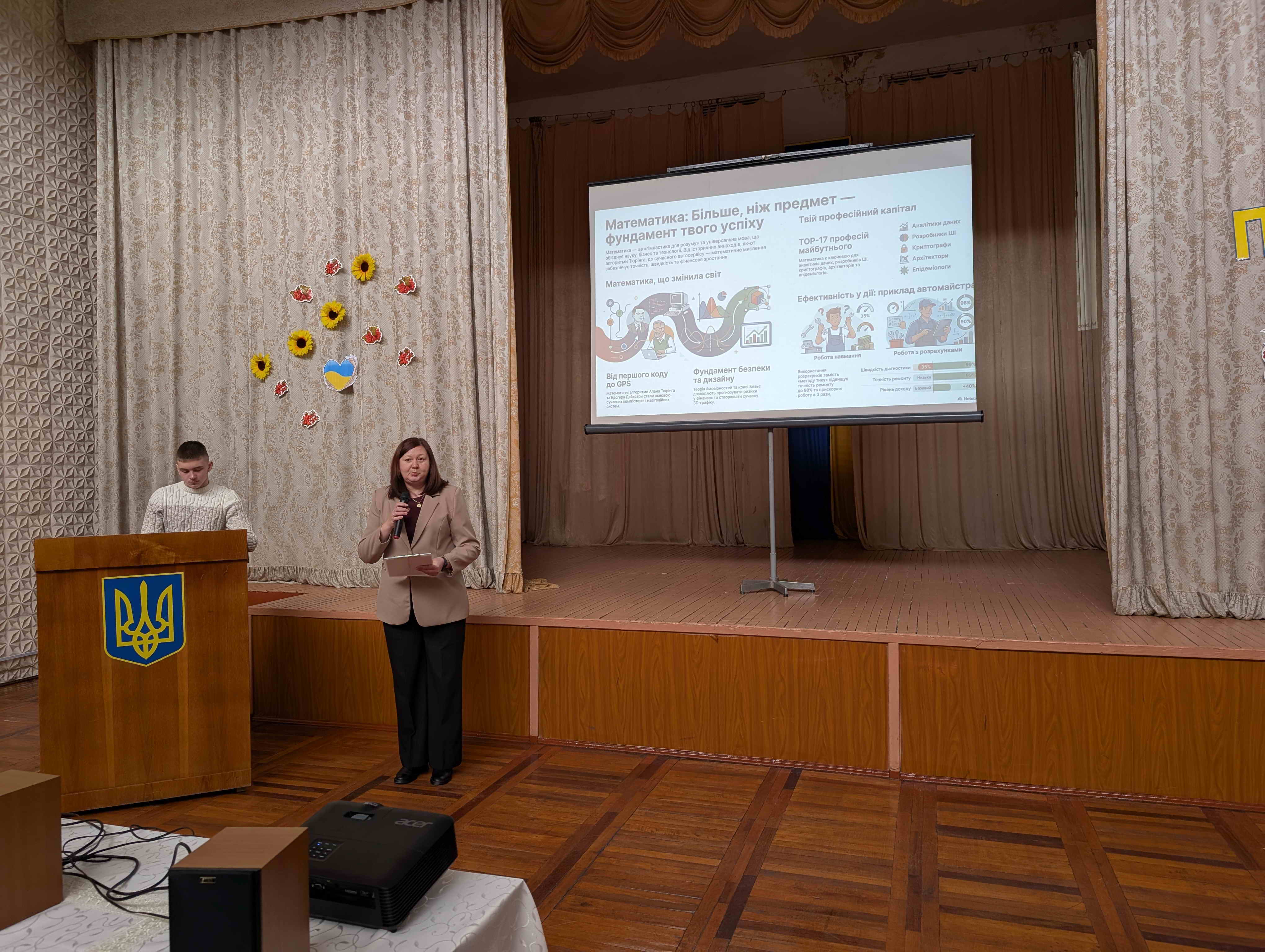 Було представлено учнівські проєкти: «Математика: більше ніж предмет – фундамент твого успіху», «Фізика у нашому житті», «Біологія – наука про природу і людину», «Хімія – твій прихований інструмент у майстерності», «Цифрові технології і наші професії». Кожен виступ став переконливим доказом того, що знання з математики, фізики, хімії, біології та інформатики є не лише теоретичною основою, а й практичним інструментом у щоденній діяльності майбутніх фахівців.